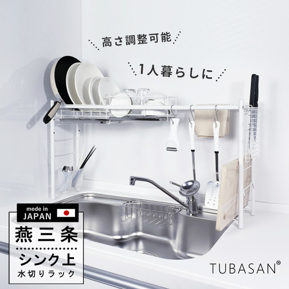 水切りラック シンク上 スリム 燕三条 水切り かご1個タイプ 白 伸縮 高さ調整 一人暮らし カゴ 白い キッチン 水切り 50007