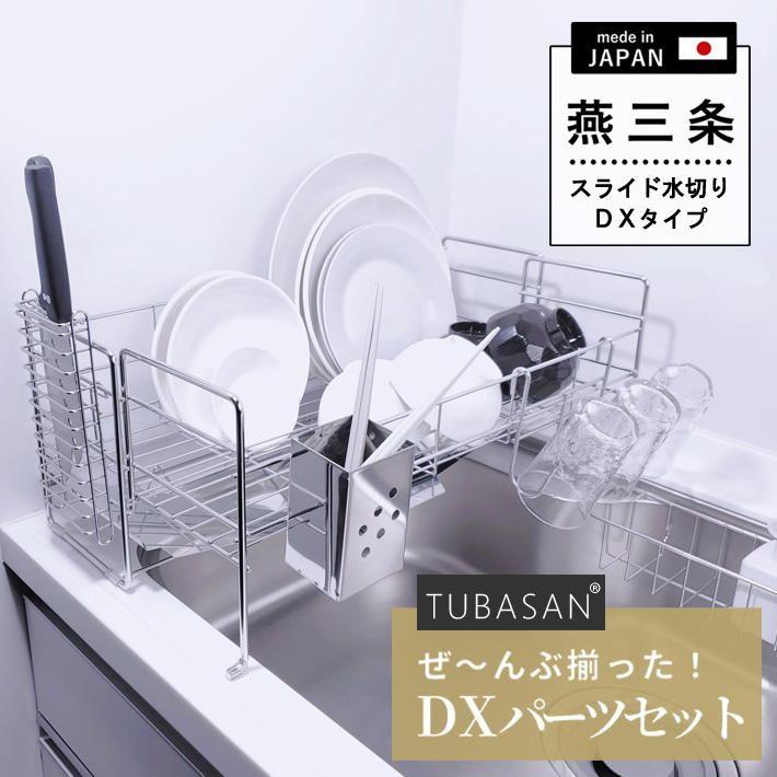 水切りラック スリム ステンレス 燕三条 スライド 1段 伸縮 【公式ショップ 正規品】 シンクサイド グラス 収納 大容量 水切り かご カゴ 箸立て 日本製 50040