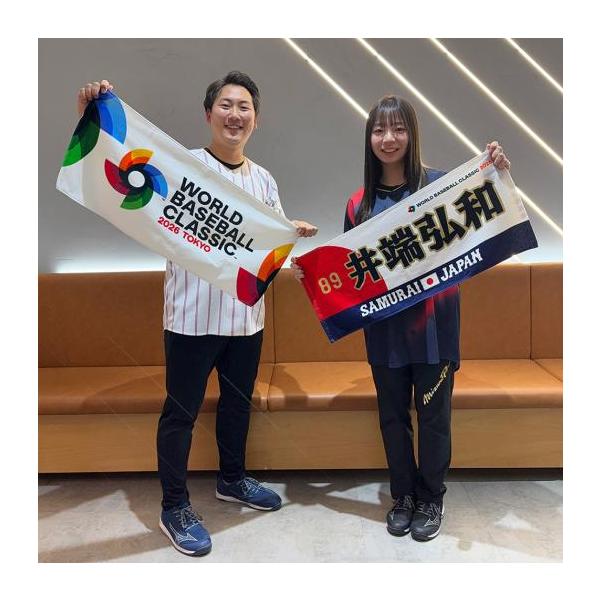 2026 WORLD BASEBALL CLASSIC TMで侍ジャパンチームを応援するためのフェイスタオル。選手名・番号入り。