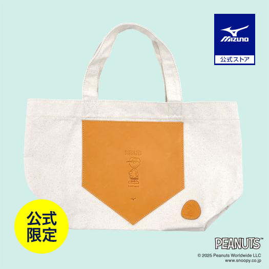 ミズノ直営店限定 PEANUTS トートバッグ 約8L グラブ革 野球 ファングッズ お出かけ かわいい シンプル 白 ホワイト ミズノ公式 MIZUNO 1GJRGA54