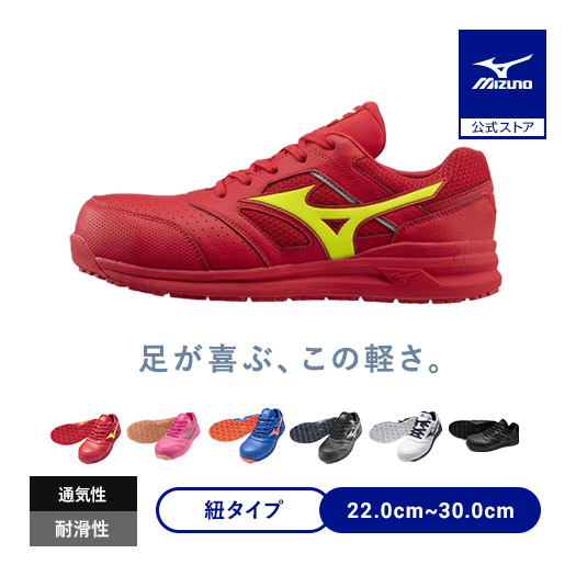 返品送料無料 ミズノ公式 オールマイティLS II 11L ユニセックス レッド×イエロー ワーキングシューズ 作業靴 軽量 クリアランス