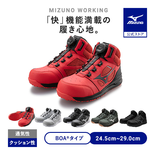 返品送料無料 ミズノ公式 作業靴 オールマイティLS II 73M BOA ワーキング メンズ レッド×ブラック JSAA規格 軽量 クリアランス