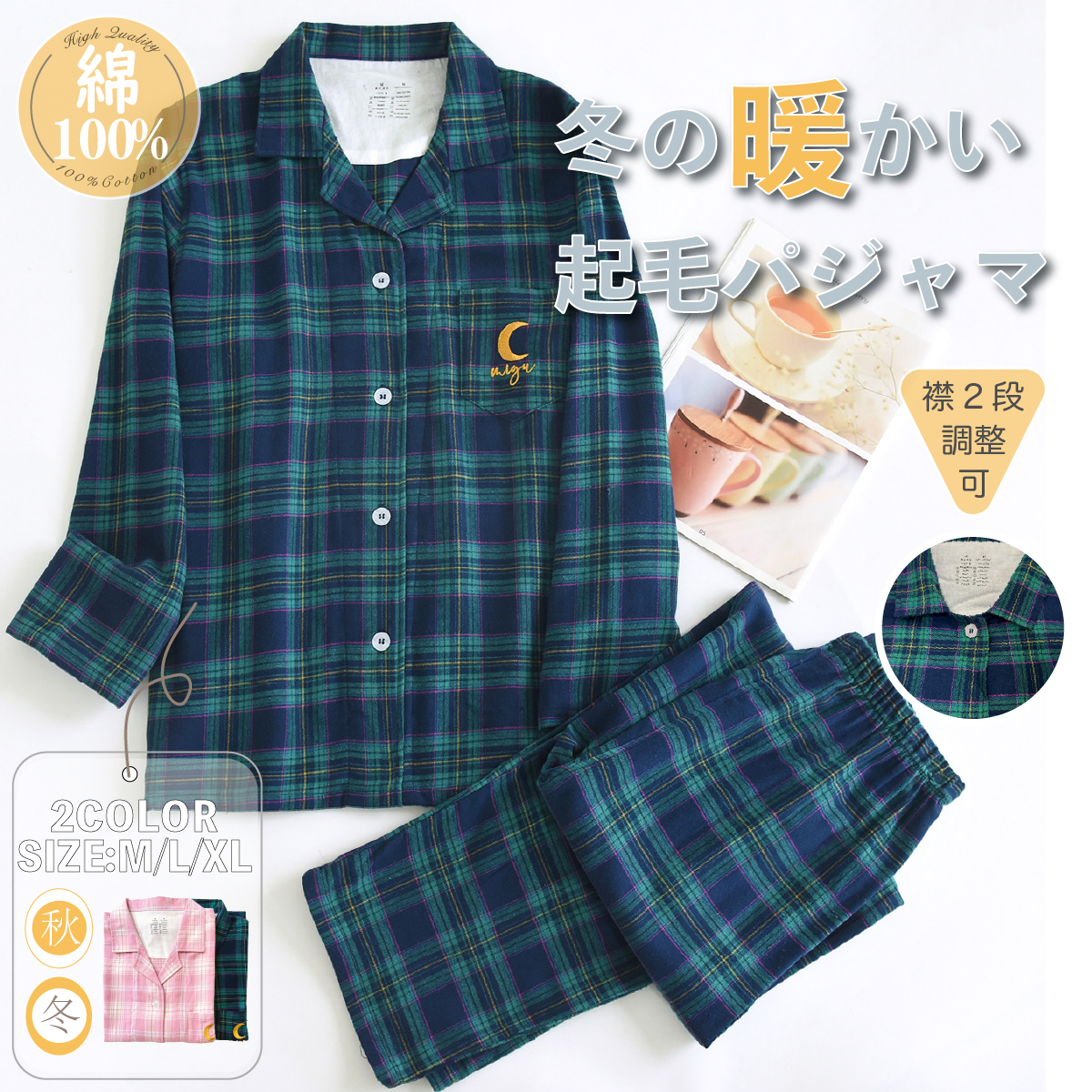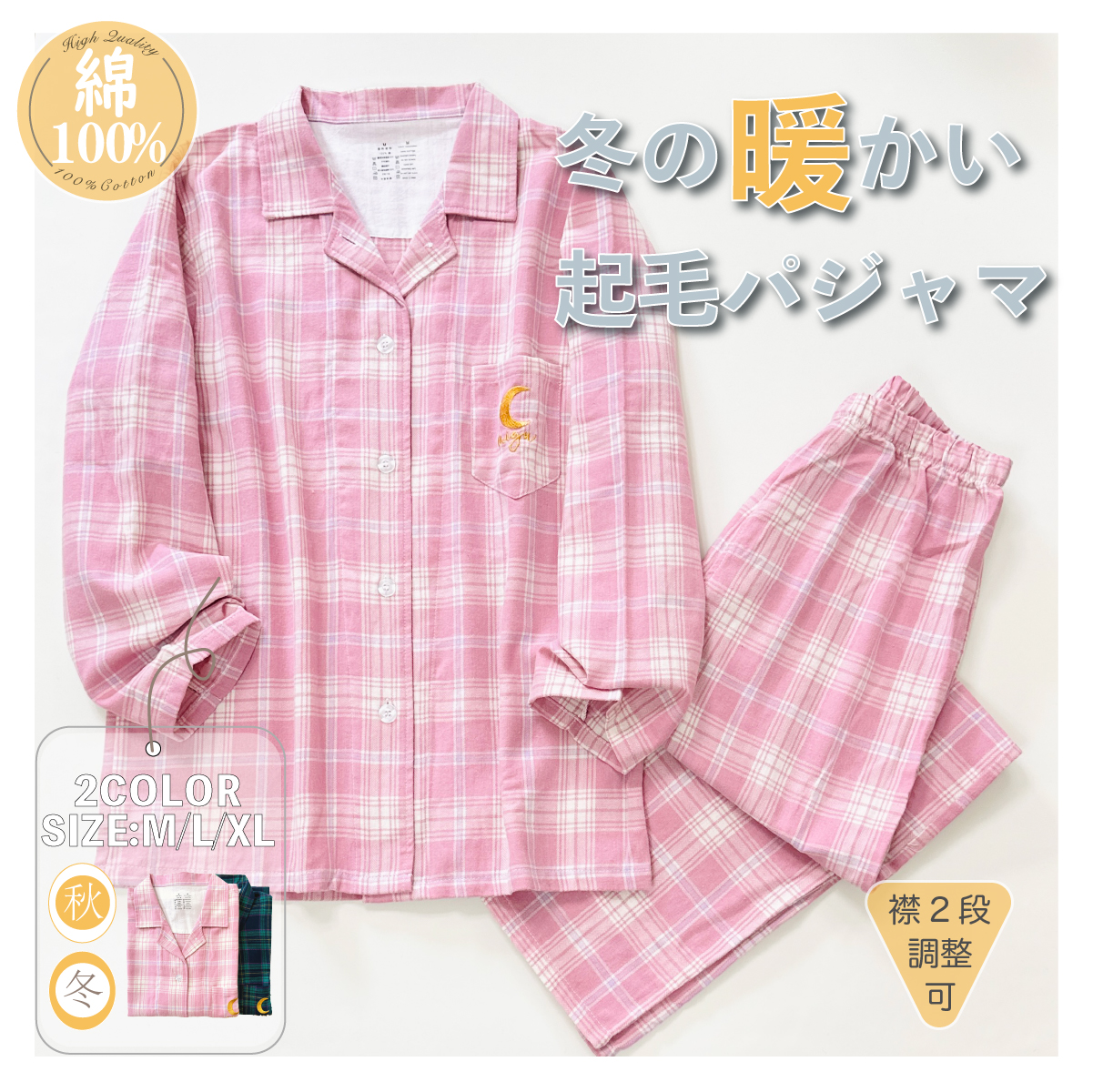 レディース パジャマ 暖かい 綿100% 秋 冬 極暖 ガーゼ ではない 敏感肌 長袖 長ズボン 前開き 上下セット ルームウェア 冷え対策 柔らか クリスマス ギフト