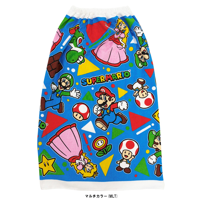 スーパーマリオ 総柄巻きタオル(125960)水泳 スイミング 海水浴 プール スポーツ スカートタオル ラップタオル 子供用 ジュニア キッズ
