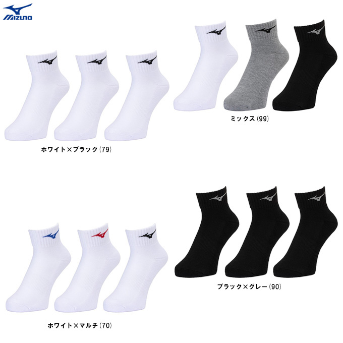 ◆メール便対応商品◆MIZUNO(ミズノ)限定 3P ソックス ショート(32JXB200)スポーツ トレーニング ランニング カジュアル 靴下 3足組 男女兼用 ユニセックス