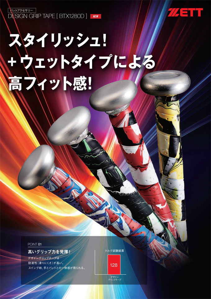 ◆メール便対応商品◆ZETT(ゼット)バット用カラーグリップテープ 1本入り(BTX1280D)野球 ソフトボール グリップテープ 小物 バット用品 バットアクセサリー