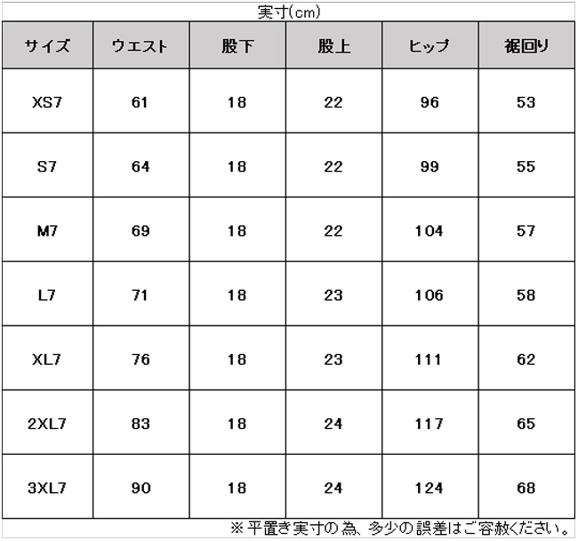 サイズ:身長 / チェスト / ウエスト