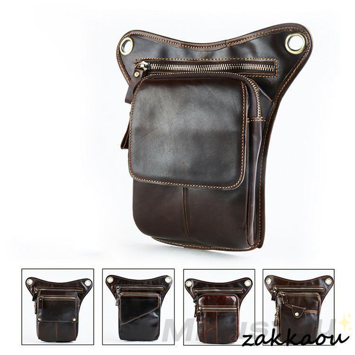 メンズ レッグポーチ レッグバッグ ボディバッグ ウエストポーチ 本革 ビンテージ 多機能 斜めがけ 鞄 バイク 自転車