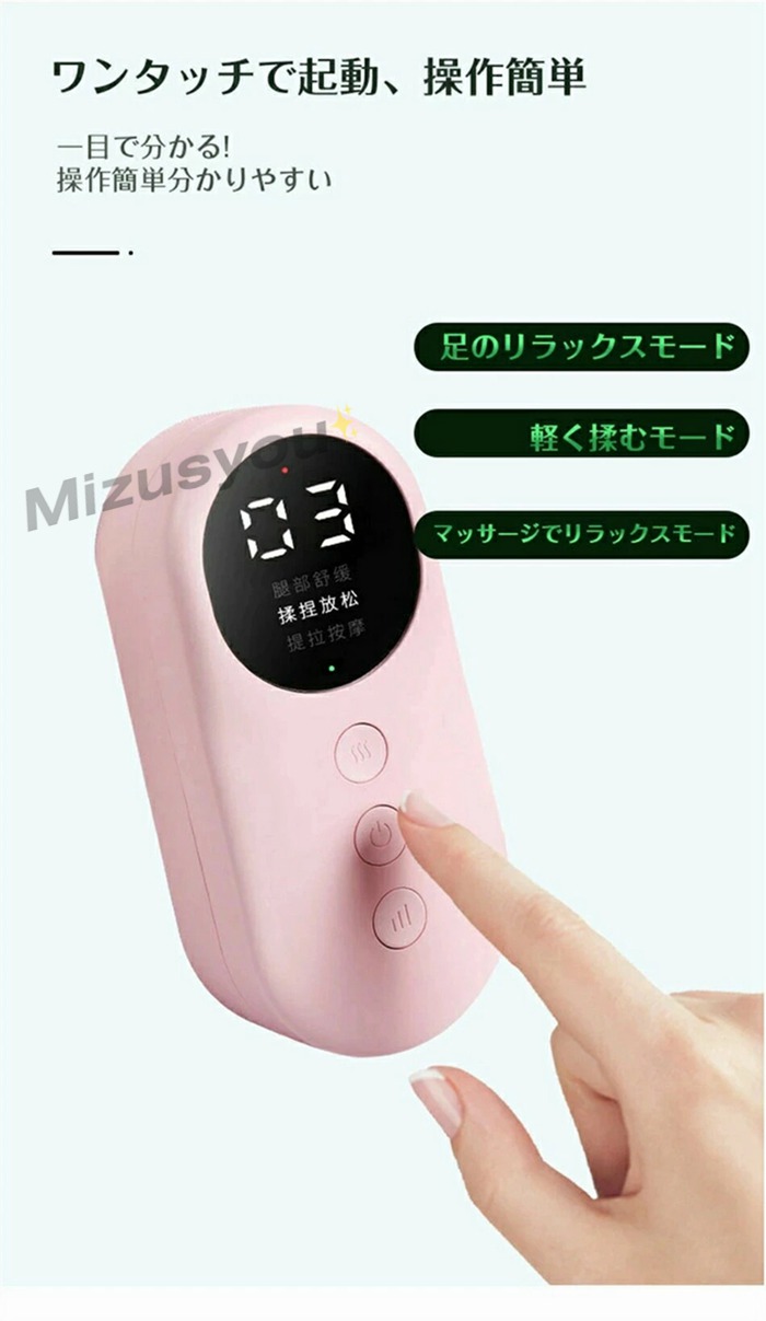 腕や、ふくらはぎ、足首からつま先までマッサージできますので利便性が満載します。エアコンの効いた室内でいつも冷えを感じる* 立ち仕事やデスクワークで長時間同じ姿勢で足がむくむ、重だるい* 家事疲れ* 運動後の全身疲労 効果または効能 あんま、マッサージの代用。