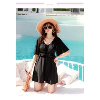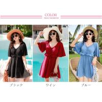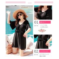 ぽっちゃり 水着 ワンピース 体型カバー 大きいサイズ レディース 半袖 露出控えめ オールインワン パッド付き ママ フレア 無地