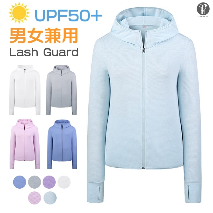 ラッシュガード レディース メンズ 涼感 男女兼用 長袖 フード付き 立ち襟 ジップアップ パーカー 紫外線対策 UPF50+ 涼しい 薄手 夏対策 暑さ対策 熱中症対策 おしゃれ ペアルック プール 海 ビーチ 旅行 キャンプ ランニング フィットネス