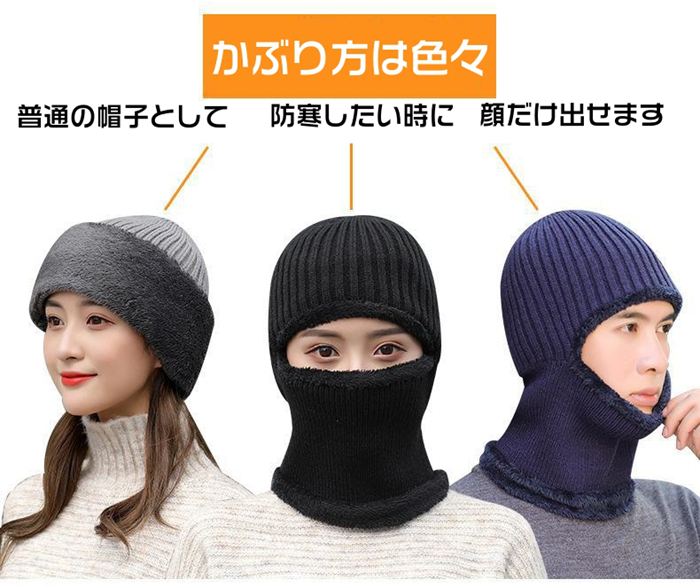 ニット帽 男女兼用 裏ボア 帽子 防寒 目出し帽 ニットキャップ フェイスマスク ネックウォーマー ふわふわ 暖かい