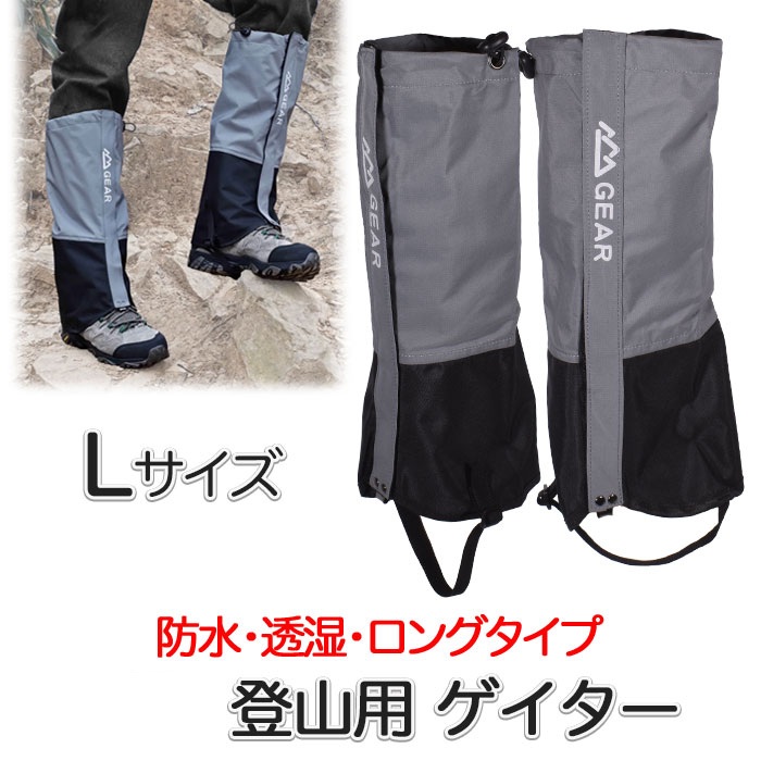 登山用ゲイター グレー Lサイズ 防水 登山スパッツ 男女兼用 ロング ゲーター 3色 3サイズ 登山靴カバー レインスパッツ レッグカバー 雨 撥水 泥除け 雪