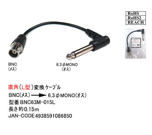 BNC→6.3mmφ2極ケーブル 0.15m[カモン BNC63M-015L]