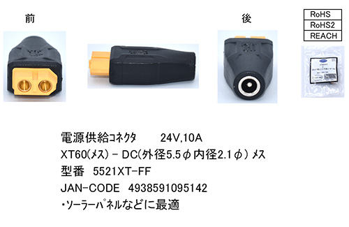 電源供給コネクタ DC 外径5.1φ内径2.1φ(メス)ーXT60(メス) [カモン 5521XT-FF]