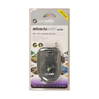 伸縮自在なスチールケーブルーロック pacsafe パックセーフ 250 4ダイアルリトラクタブル ケーブルロック 4桁のダイアルを自由に設定できる、プラスチックで覆われた伸縮自在なスチールケーブルです。バッグやカメラ、スキーなどを素早く固定したい時に役立ちます。