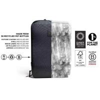 IAMRUNBOX BackPack Pro 2.0の外側は、100%リサイクルポリエステル (リサイクルPET)とリサイクルEVA、ライニングは100%リサイクルポリエステル (リサイクルPET)でできています。 外側の素材には550mlのPETボトル22個分、ライニングには14個分、合計550mlの36個分のリサイクルPETボトルが使われています。 |