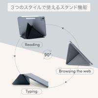 折紙からヒントを得たユニークな折りたたみカバーで、お使いの iPad を、タイピングや読書やインターネット ブラウザに最適な角度に表示させることができます。 |