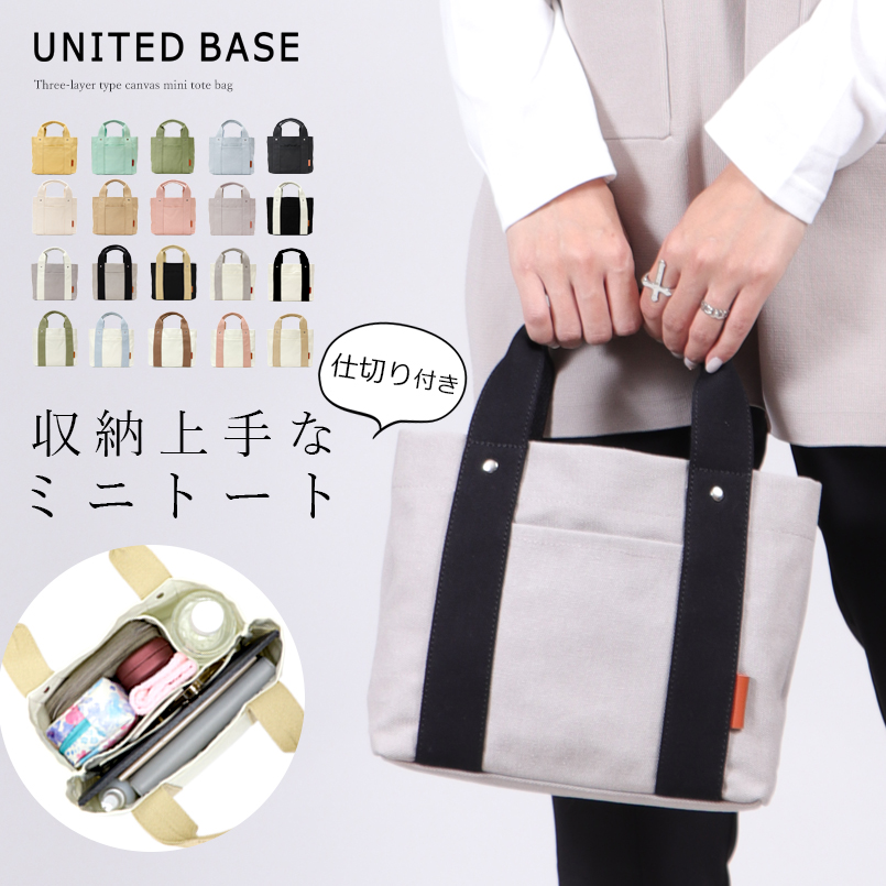 3層に仕切られた収納スペースが便利なキャンバスミニトート。