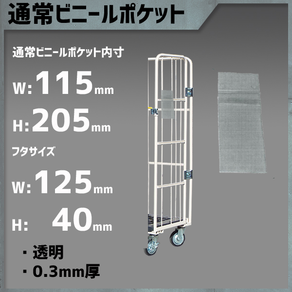 カゴ車 用 ビニールポケット 縦 標識入り メモ入り 伝票入り 透明ビニール 外寸:125W×305 mm 内寸:115W×205 mm