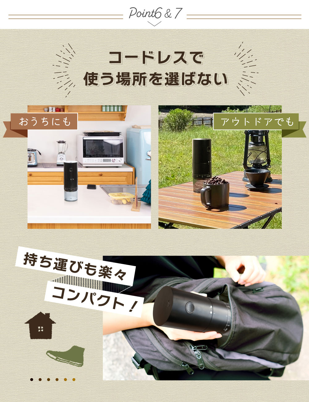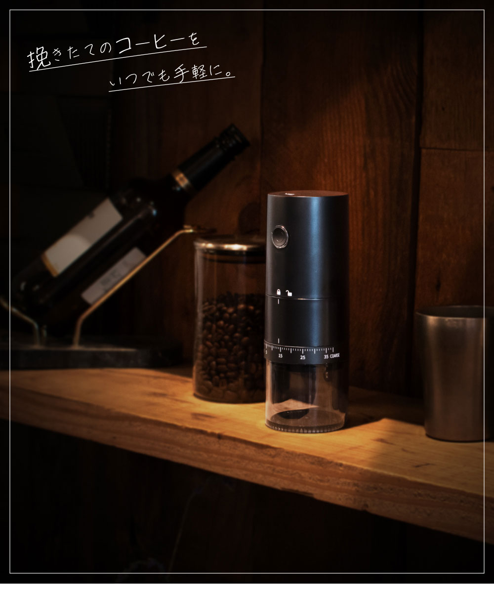 豊富な39段階の挽き方で手軽&簡単にコーヒー豆が挽けるコードレスでコンパクトな電動コーヒーミル。