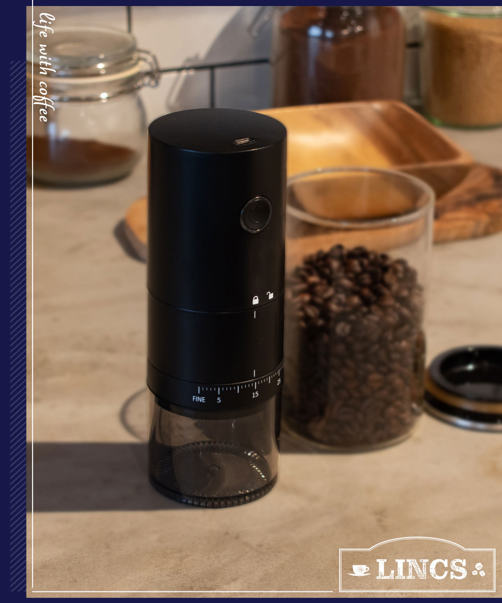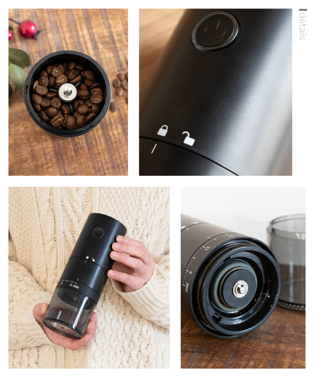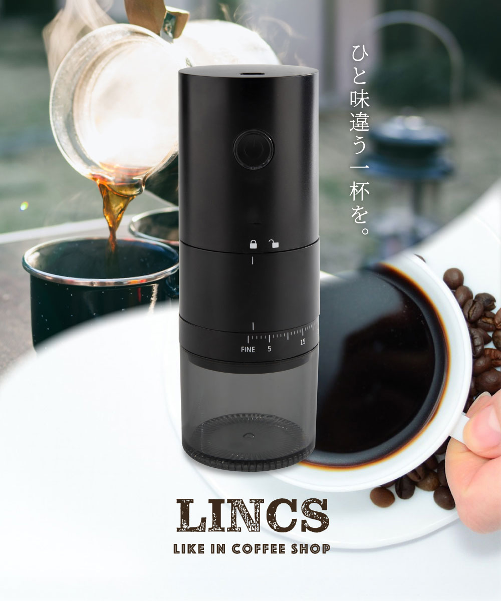 電動コーヒーミル 小型 臼式 コニカル式 コーヒーミル 電動 39段階 洗える 水洗い アウトドア 充電式 コンパクト セラミック コードレス リンクス ワンセカンド
