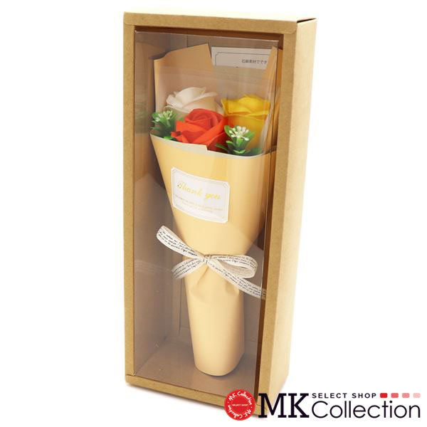 ギフトフラワー ソープフラワー 3輪ブーケ レディース メンズ Soap Flower プチギフト オレンジ FDB8H3O
