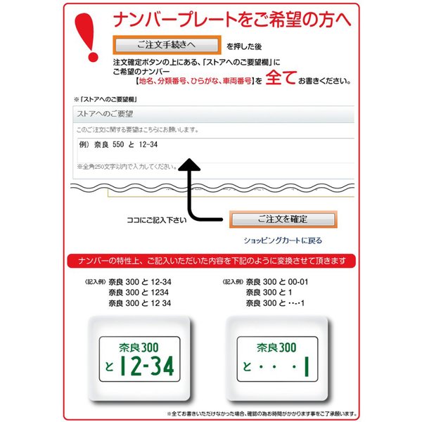 (購入時の備考欄にご希望のナンバーを入力してください)