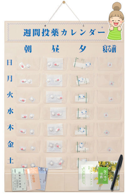 ★壁掛け式で場所をとらない♪1日4回用の投薬カレンダーです。