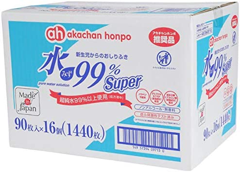 アカチャンホンポ 赤ちゃん本舗 水 99% Super 新生児からの おしりふき ケース 90枚 × 16個