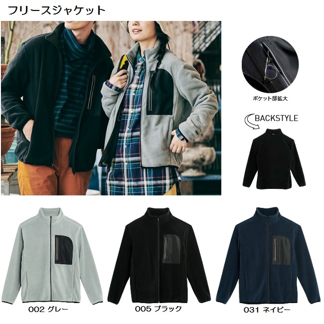 胸ポケットがアクセントのフリースジャケット。反射テープで夜間も安心。