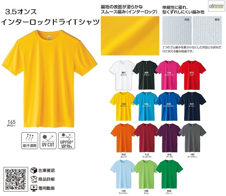 3Lサイズ インターロックドライ Tシャツ (glimmer) 00350-AIT スマート シルエット スリム 超軽量