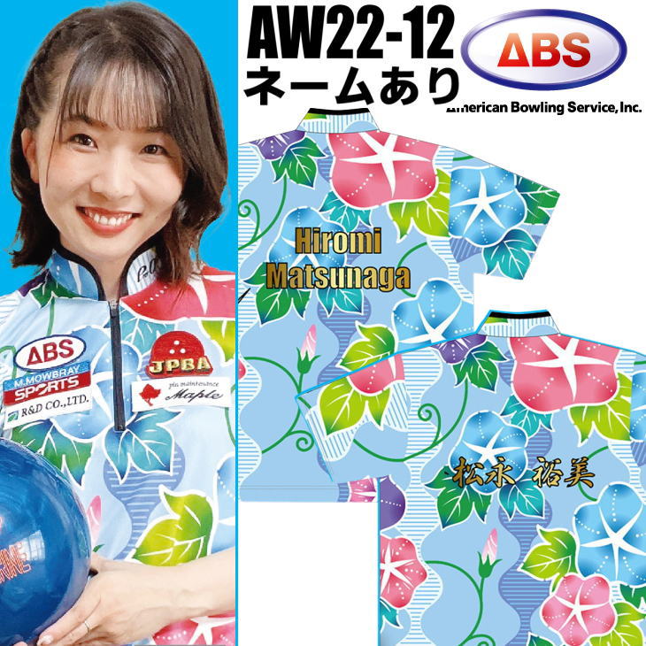ABS AW22-12 アサガオ柄、ボウリングウェアにネームが入っています。