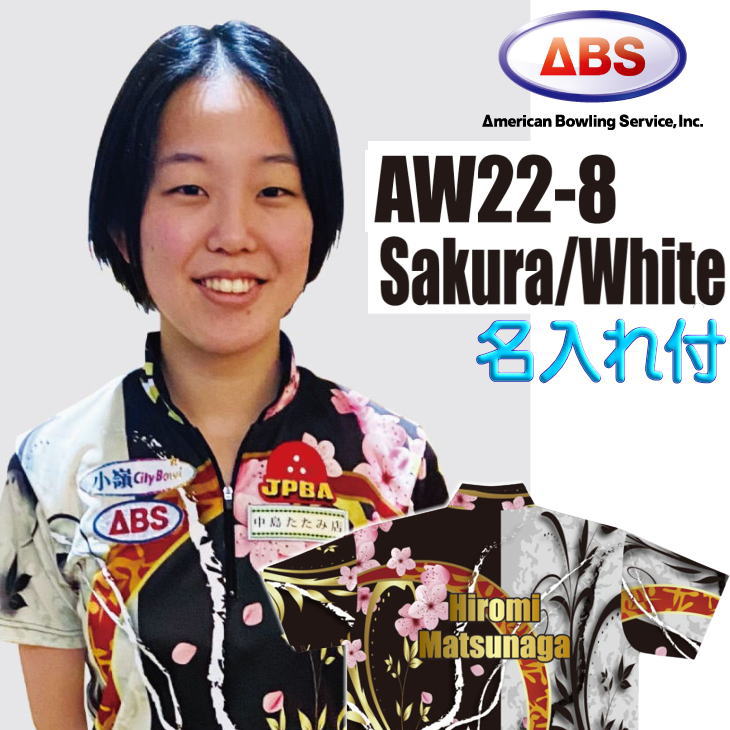 ボウリング ボウリングウェア ABS サクラ ホワイト AW22-8N ネーム付き