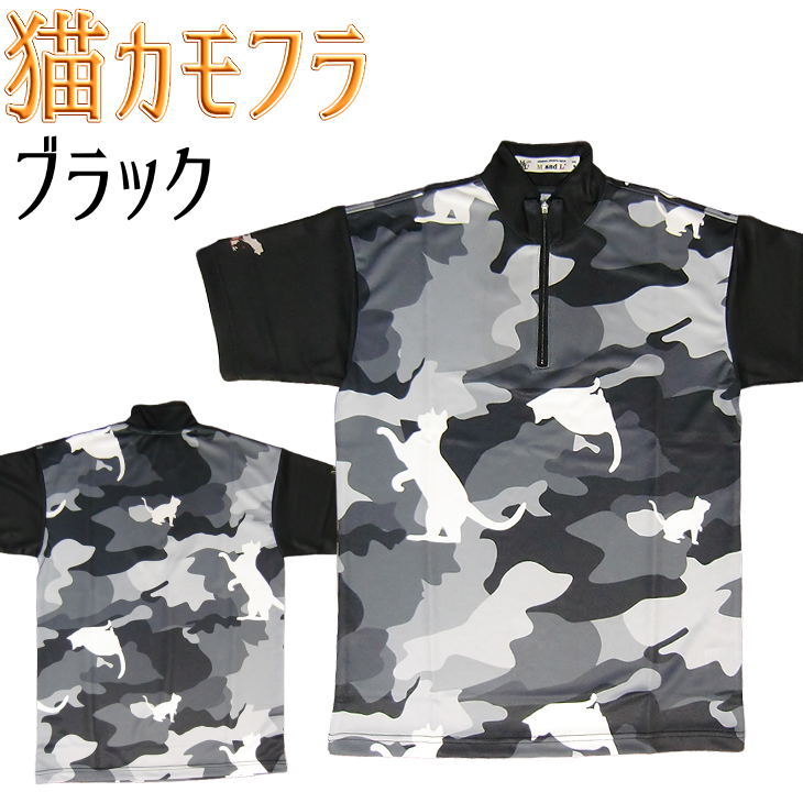猫カモフラージュ ボウリングウェア ブラック メンズ レディース MC2020-1