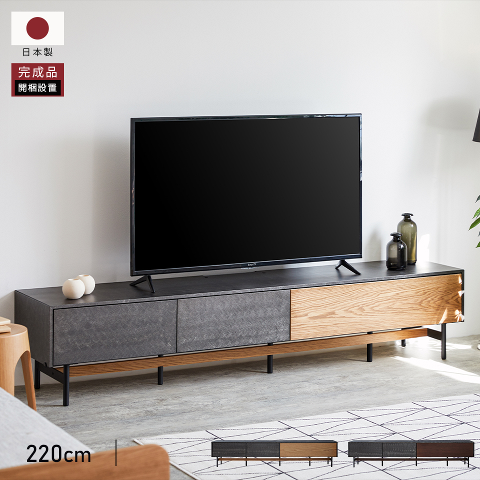【 Meuble ( モーブル ) 公式 】 大川家具 ローボード テレビ台 TV台 テレビボード ローボード 収納 棚 完成品 幅220cm モルタル調 大型 国産 日本製 アルヴィン