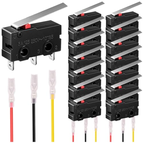 MKBKLLJY 15個ミニマイクロリミットスイッチ5A 125 250V AC SPDT 1NO 1NCモメンタリ28mm/1.1インチロングストレートヒンジレバーアームスイッチスナ