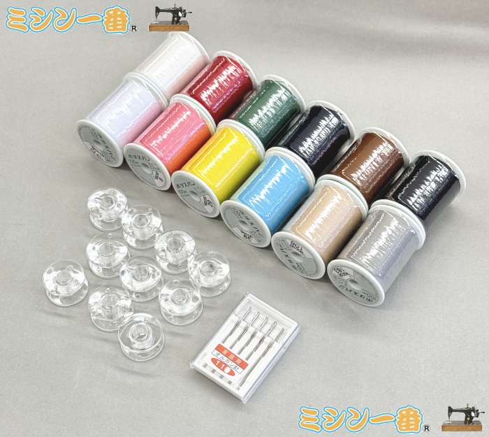 家庭用ミシン専用 ミシン一番 NEWノーマルセット ミシン糸12色・ミシン針1セット・家庭用ボビン10個