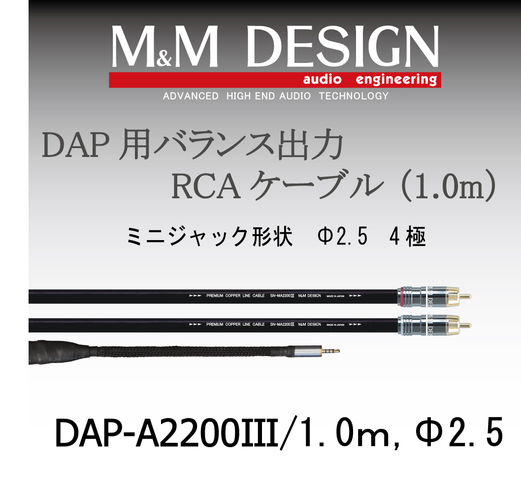 先端メッシュ部分はDAPにストレス無く接続できるよう柔らかい素材で製作しています。DAPでいうバランスケーブルとは、ホームオーディオのバランス出力XLR(キャノン タイプ)とは意味も構造もまったく違うものです。XLRは業務用や放送用機器などの音響用機器に多く使用されているもので、機器内部にオペアンプを2つ使いホット(+)、コールド(-)、グランドと1chに4本のケーブルを使用する伝送方法です。一方DAPでいうバランスケーブルとはホームオーディオでいうRCAタイプ(アンバランス)の構造ですが、通常マイナス側右が共通で繋がっているものを左右分離して出力させるタイプの事をバランスケーブルと言っています。
