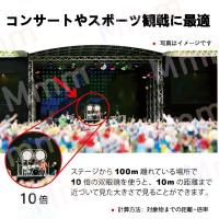 高透過率のレンズ採用 光学倍率をコンサートシーンで使える10倍を維持したまま、光の透過率をできるだけ上げることのできるレンズを採用。薄暗い場所でも明快なブルーレイ画質を見える可能。10倍の倍率で、100m先の人を裸眼で10m先から見るのと同じ大きさで見えます。目の前に臨場感を見逃さないように。