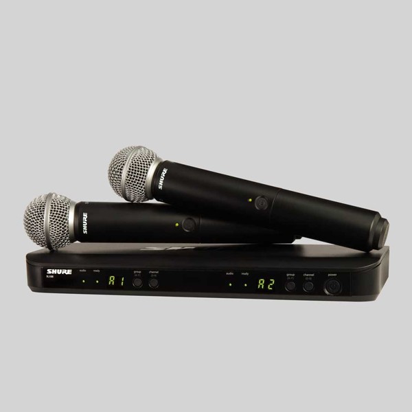 2本のSM58ヘッド搭載ハンドヘルド型送信機とBLX88デュアル受信機のセット