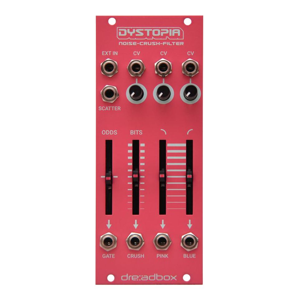 Dystopia(ディストピア)は、ノイズ・ジェネレーター、ビット・クラッシャー、デュアル・フィルターを統合したモジュールです。