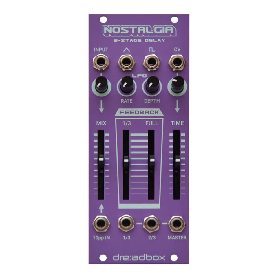 Nostalgia(ノスタルジア)は、Dreadbox のシンセサイザー Erebus に搭載された エコー回路をベースにした、3ステージ・ハイブリッド・ディレイです。