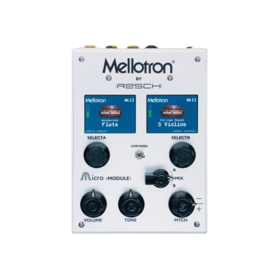 Mellotron Micro Module には、M4000D シリーズ譲りの Hi/Low スイッチを搭載。オリジナル Mellotron のテープ再生速度の変化を再現し、Low ポジションでは音程が1オクターブ下がり再生時間も2倍になります。そしてこれは、単なるトランスポーズとは異なり、テープ特有の豊かな質感変化をもたらします。