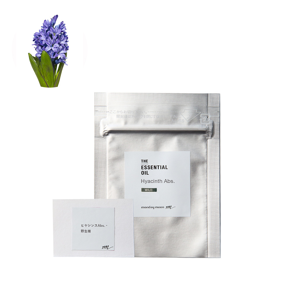 マンデイムーンのヒヤシンス・アブソリュート・野生種は、オランダで自生するヒヤシンスオリエンタリス(Hyacinthus orientalis)の紫色の花を持続可能な方法で収穫し抽出しました。