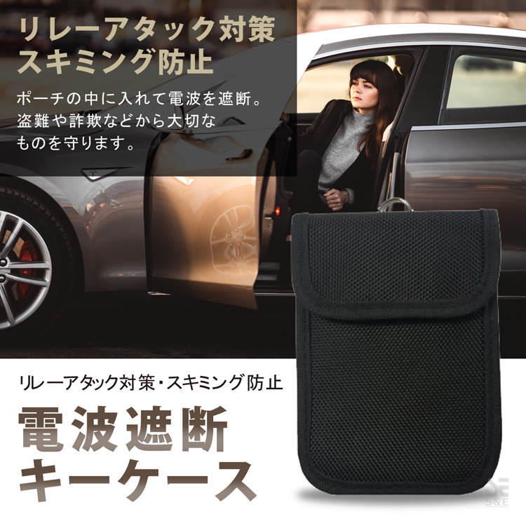・リレーアタック対策に最適。電波を遮断してくれるので、スマートキーを入れておけば、いつのまにか愛車が無くなってしまう悪質な盗難から大切な車を守ります。(※外ポケットは電波の遮断はできません)