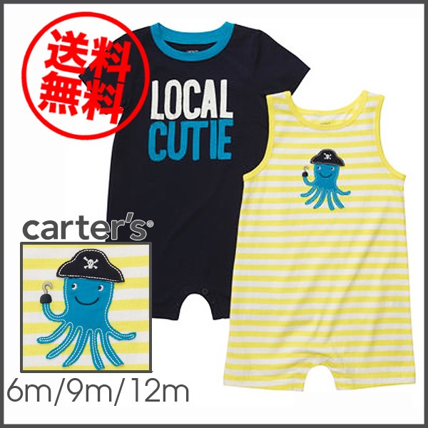 CARTER'S カーターズ ロンパース2枚セット海賊たこ・ローカル男の子6m9m12m65cm70cm75cm出産祝いベビー服ボディスーツ半袖袖無しカバーオールタンクトップ