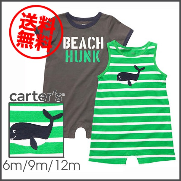 CARTER'S カーターズ ロンパース2枚セットくじら・ビーチ男の子6m9m12m65cm70cm75cm出産祝いベビー服ボディスーツ半袖袖無しカバーオールタンクトップ