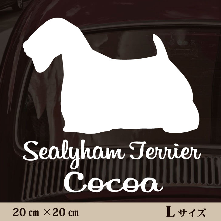 シーリハム・テリア シルエット型カーステッカーです。3M社製の耐久性に優れた屋外用シートを使用。オーダーメイドで名前を入れられます。カッティング 転写式 窓 車ステッカー