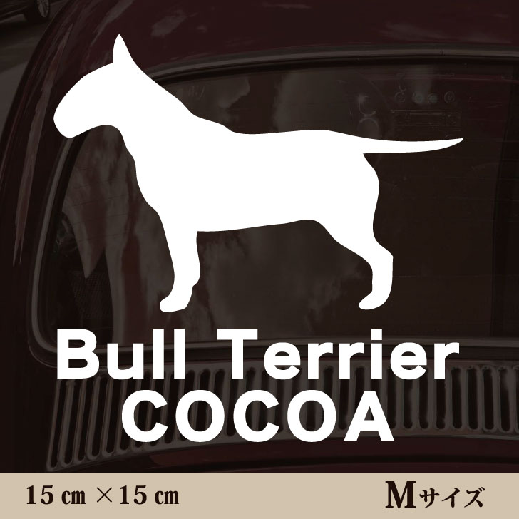 ブル・テリア シルエット型カーステッカーです。3M社製の耐久性に優れた屋外用シートを使用。オーダーメイドで名前を入れられます。カッティング 転写式 窓 車ステッカー